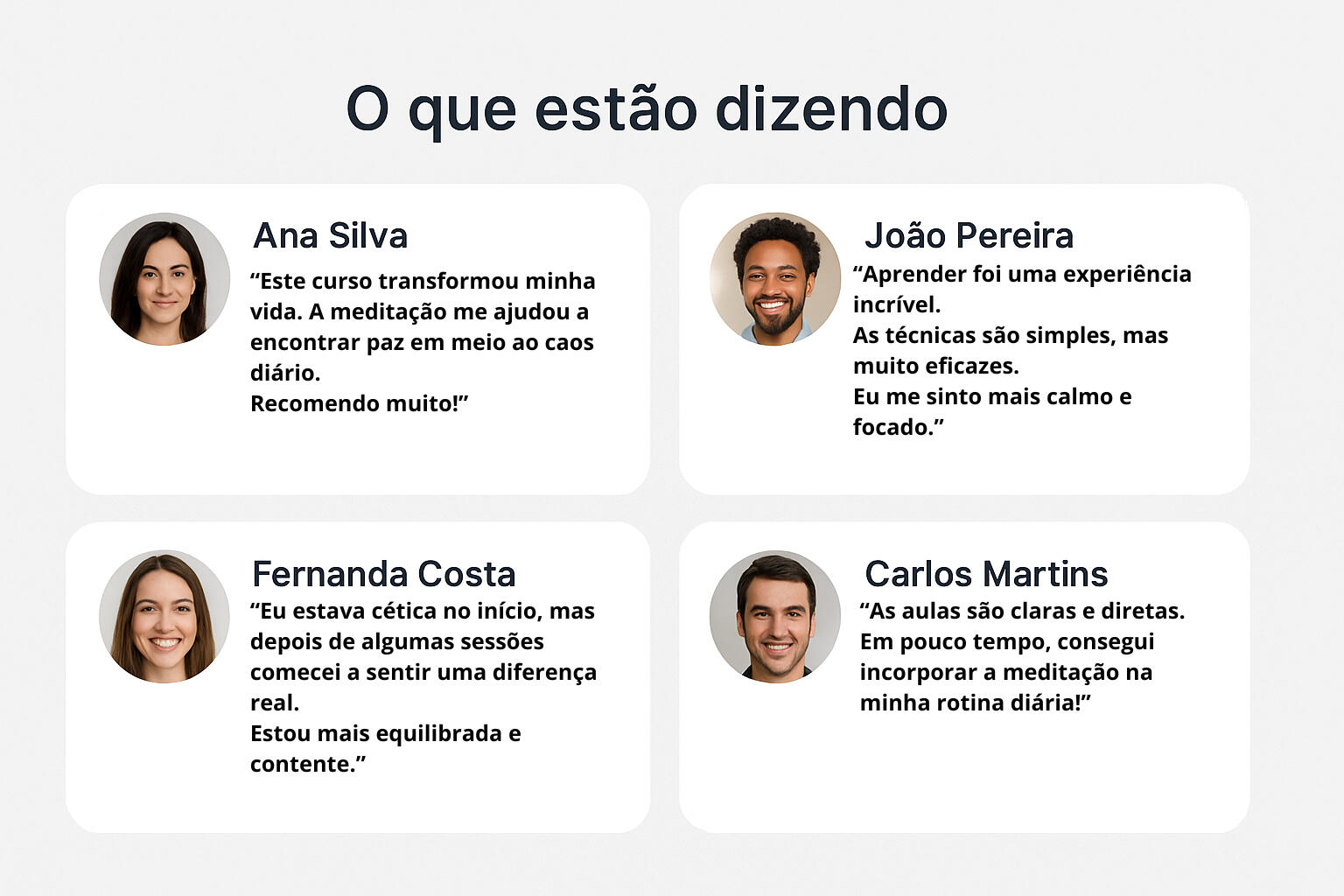 Basta dedicar de 5 a 15 minutos por dia. As práticas são curtas, práticas e pensadas para caber em qualquer rotina.🧾 É um curso? Tem vídeo?